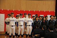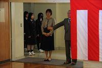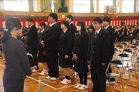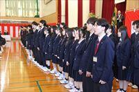 式の最後に、生徒会、野球部、女子バレー部、卓球部、サッカー部、男子バスケットボール部、女子バスケットボール部、放送局、ボランティア局、吹奏楽部、演劇部の部活動生徒、120名による校歌披露を行いました。