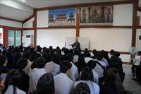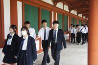 2年次生は明日から3泊4日の日程で見学旅行に出発します。本日6校時、見学旅行結団式を行いました。団長挨拶、生徒代表挨拶、年次主任から引率団の紹介、生活の心得や健康管理などについてそれぞれ担当生徒から説明を行いました。この見学旅行が、全員の思い出に残るものになることを願っています。
