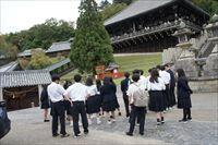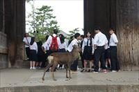 奈良公園に到着後、各クラスごとについていただいたガイドさんに案内され、春日大社、南大門、東大寺本堂、二月堂・三月堂を見学し、三條小鍛冶で休憩を取りました。